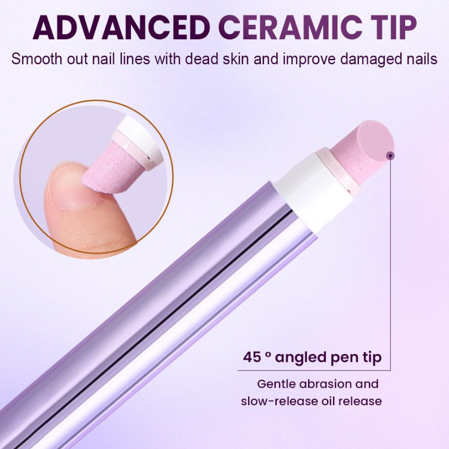 MESS-FREE PEN DESIGN FOR PRECISE APPLICATION: The pen-style applicator ensures controlled, even oil distribution without dripping or waste. The rotating base dispenses just the right amount of product, while the fine tip reaches cuticles and nail edges effortlessly. Compact enough for purses or travel kits.