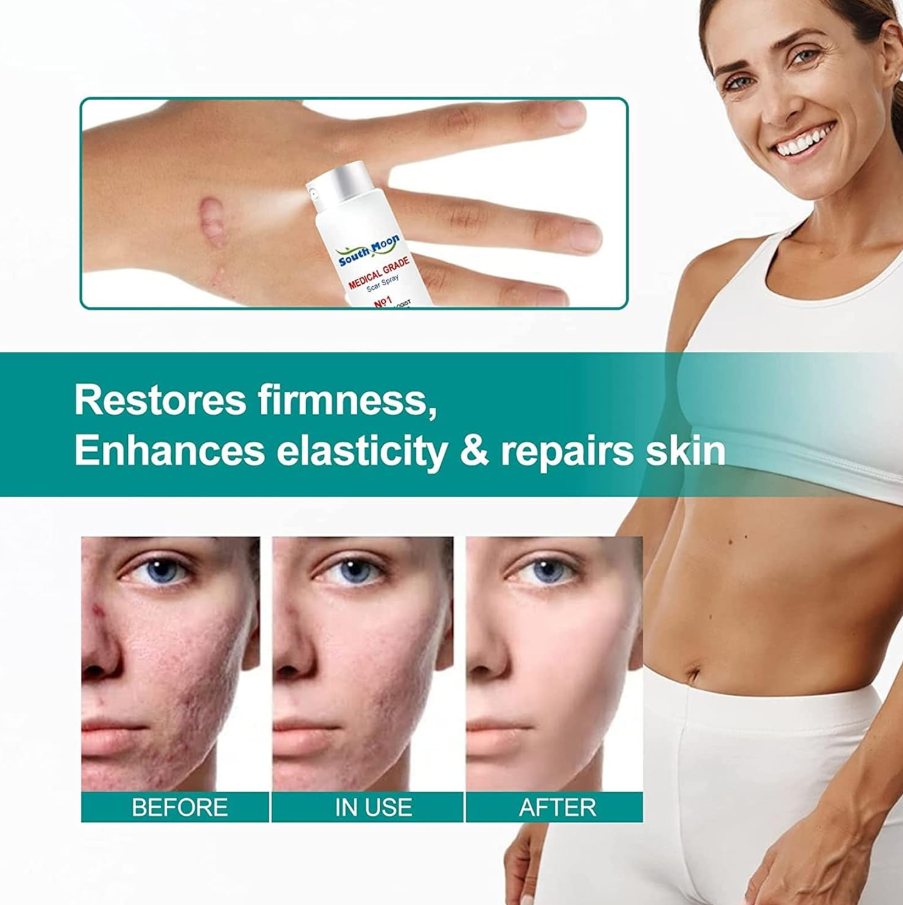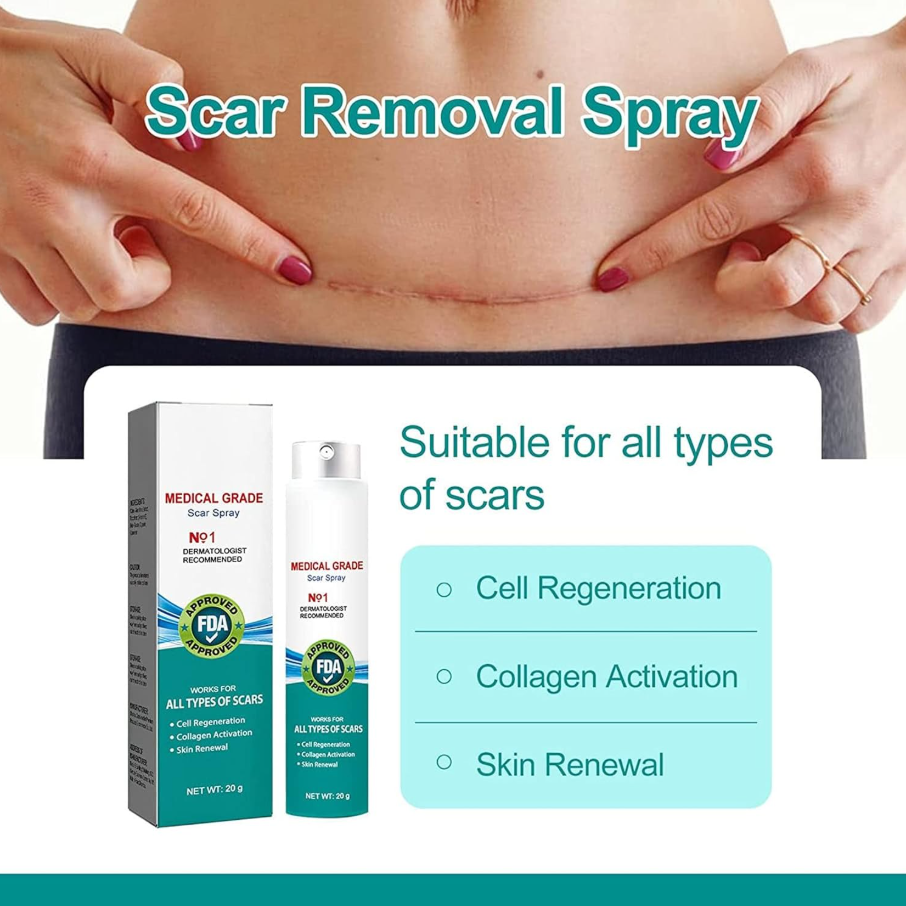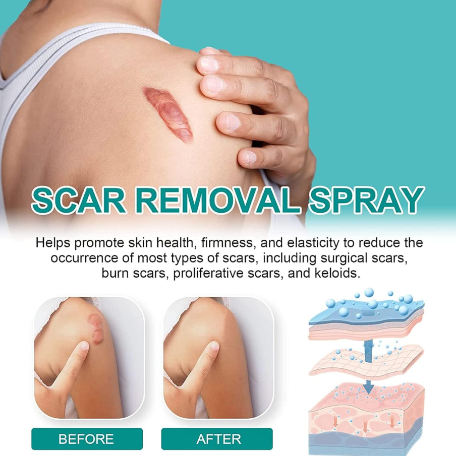 100% Advanced Scar Spray- Made with allantoin and advanced scar Spray, our formula helps promote skin health, firmness, and elasticity to reduce the appearance of most types of scars, including surgical scars, burn scars, hypertrophic scars, and keloids. The silicone-based scar spray forms a breathable layer to increase the skin hydration, protect the scar tissue, normalize the collagen synthesis and balance the skin growth procedure,which can make your skin look smooth and even!
