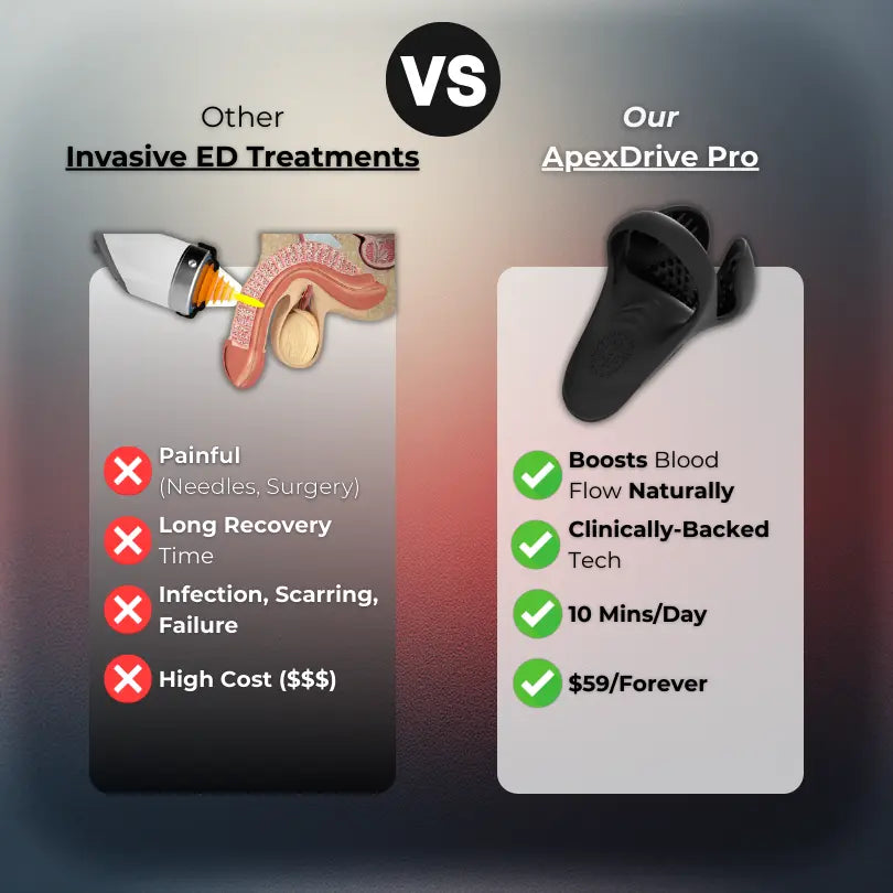 Unlike pills or temporary fixes, ApexDrive Pro works by improving blood flow, supporting nerve response, and conditioning erectile tissue. Low-intensity wave therapy helps restore natural function over time without drugs or invasive procedures.
