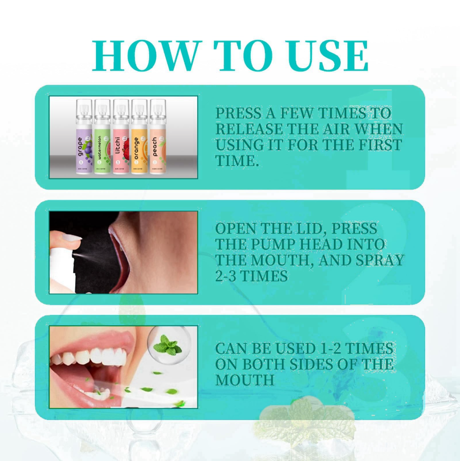 Compact and travel-friendly, they fit easily into your pocket, purse, or car, making fresh breath just a spray away wherever you are. Simply spray directly into your mouth for instant freshness, with no need for gum, mints, or water.