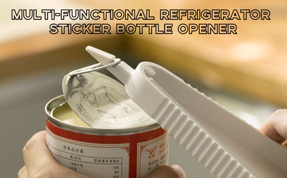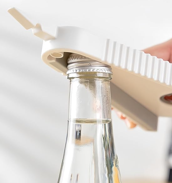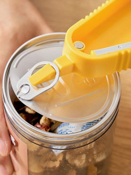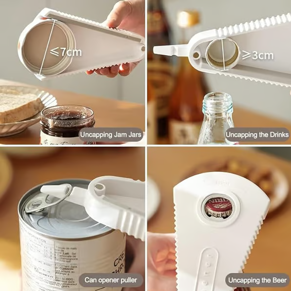 - Multi Opener can open six different types of seals/lids: bags, safety seals, pull tabs, bottle caps, bottle tops, jar lids
