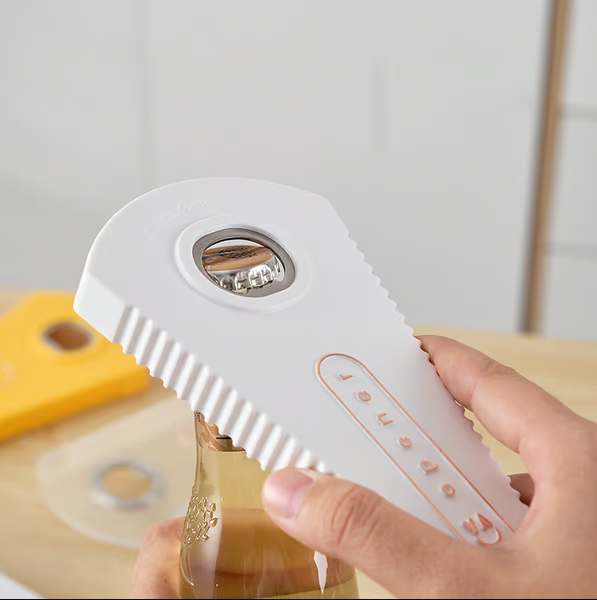 This Multi Opener opens six different types of seals and lids with ease!
