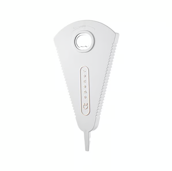 The unique enclosed blade feature cleanly slices open tightly sealed bags.