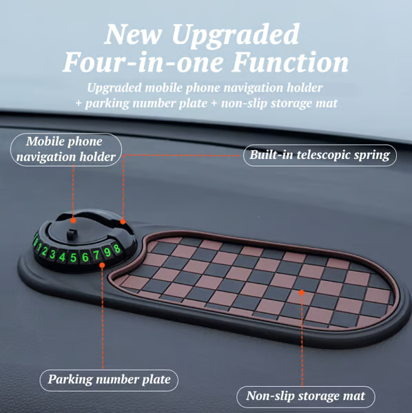 Cell Phone Holder + Parking License Plate + Storage Mat Multi-functional Car Holder Non-slip and durable, make driving safer and easier.📱🚗