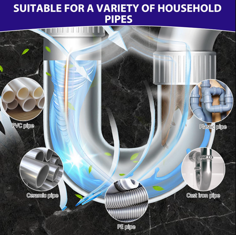 VERSATILE USE: Suitable for all areas of your home, including kitchen sinks, bathroom sinks, and toilets. This multi-functional solution is perfect for cleaning and eliminating residual odors from various types of pipes.