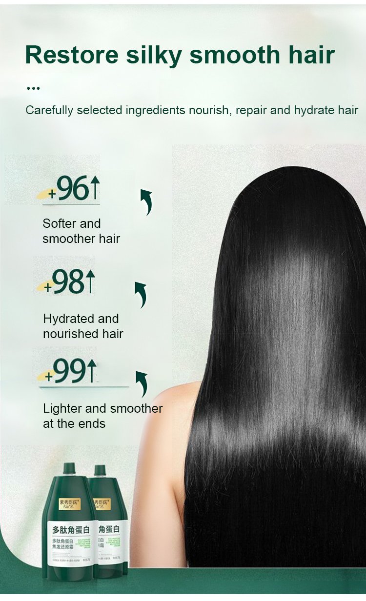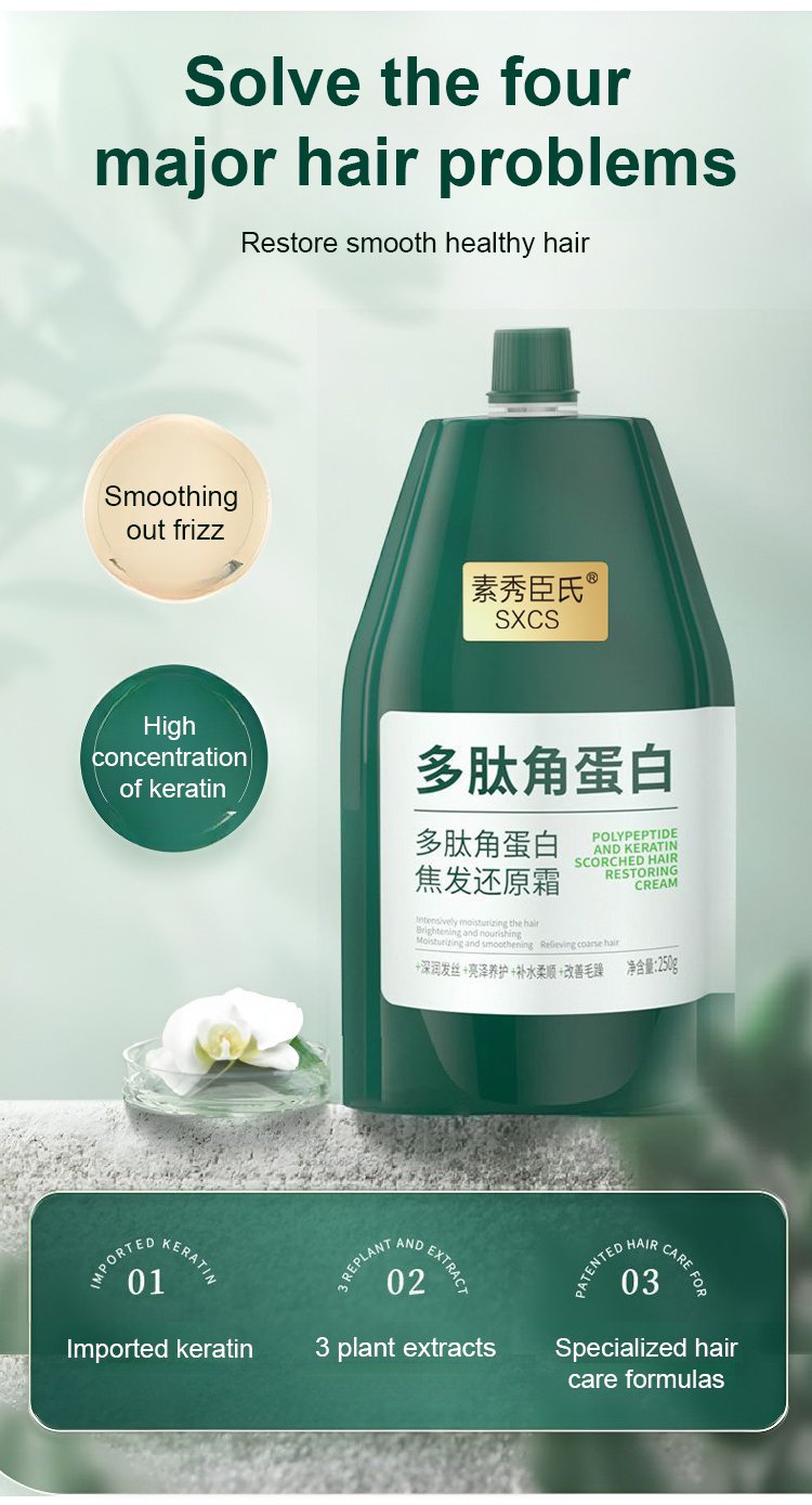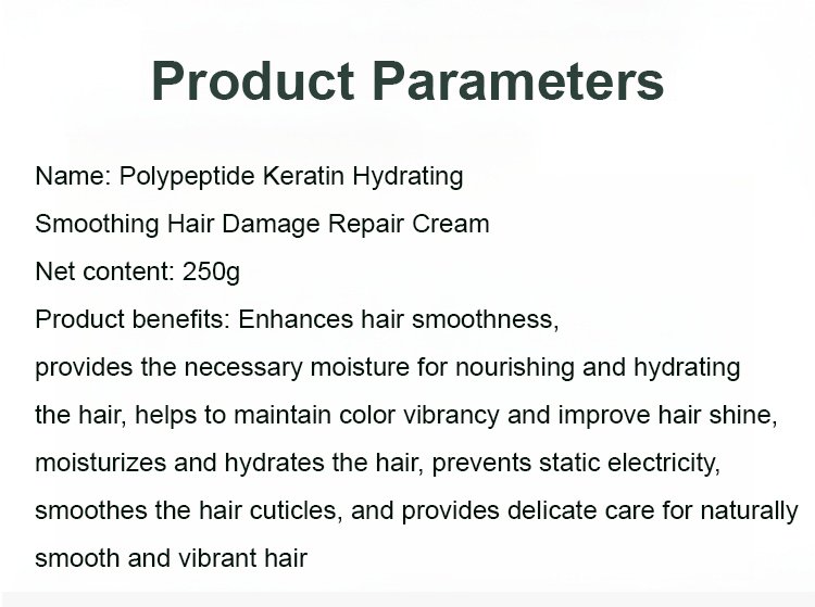 Our Polypeptide Keratin Hydrating Smoothing Hair Damage Repair Cream is formulated with bioactive polypeptides and hydrolyzed keratin to fortify and replenish weakened hair fibers. This intensive treatment seals in moisture, enhances elasticity, and smooths cuticles for visibly healthier, more resilient hair. Ideal for restoring strength and shine to heat-damaged and color-treated hair.