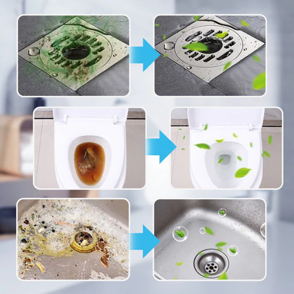 POWERFUL PIPELINE DREDGING AGENT - This formula swiftly dissolves upon contact with water, effectively breaking down food waste, grease, and hair clogs. It penetrates deep into pipes to dismantle blockages, restoring smooth water flow in sinks, floor drains, and toilets—your ultimate solution for stubborn clogs!