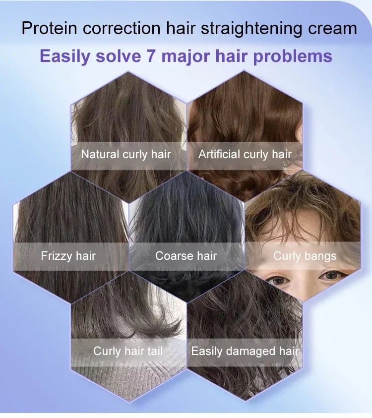 Transform your hair with our advanced Protein Correction Hair Straightening Cream, specially formulated to smooth, nourish, and repair even the most unruly strands.