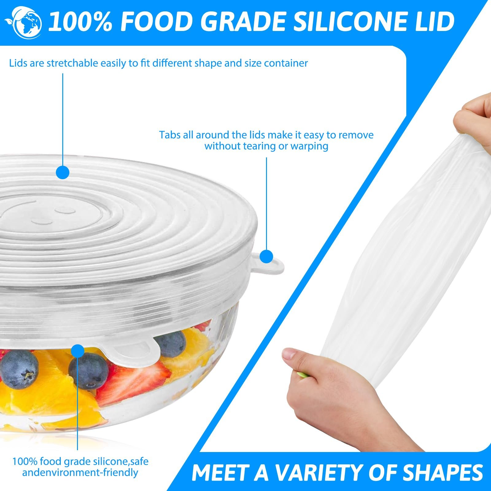 Keep your food fresh with our reusable silicone stretch covers! This 6/12-piece set creates an airtight seal on bowls, plates, fruits, and more—perfect for leftovers, meal prep, and pantry storage. Made from food-grade silicone, these durable lids are heat-resistant, dishwasher-safe, and BPA-free, offering a sustainable alternative to plastic wrap. Stretches to fit various sizes, reducing waste while saving you money!
