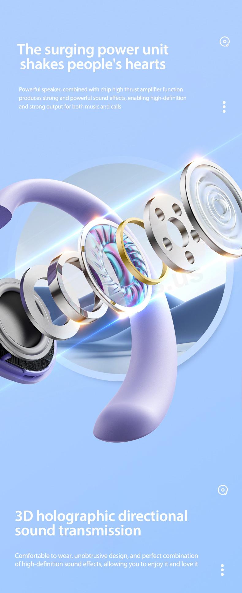 3D holographic stereo sound: The unique cavity structure of the headphones makes it comfortable to wear and solves the problem of sound leakage.